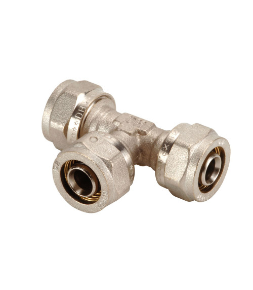Raccord en té égal à compression pour tube multicouche Ø26mm.
