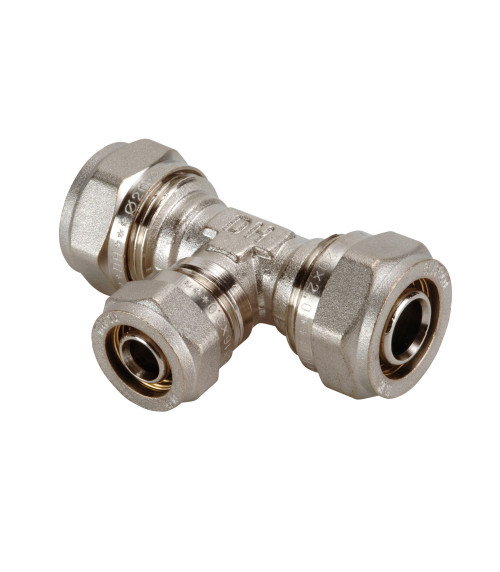 Té réduit à compression pour tube multicouche Ø20-16-16mm.