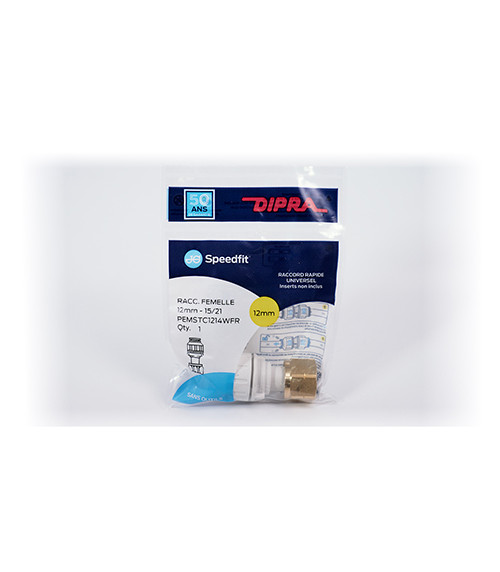 Raccord femelle rapide, automatique et universel permettant de raccorder n'importe quel tube de 12mm de diamètre à un raccord mâle en 15/21.