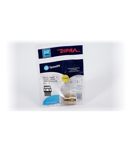 Raccord mâle rapide, automatique et universel permettant de raccorder n'importe quel tube de 12mm de diamètre à un raccord femelle en 15/21.